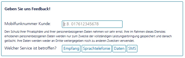 klickst. Anschließend gib deine Telefonnummer ein und wähle die entsprechenden Services aus, die Einschränkungen aufweisen