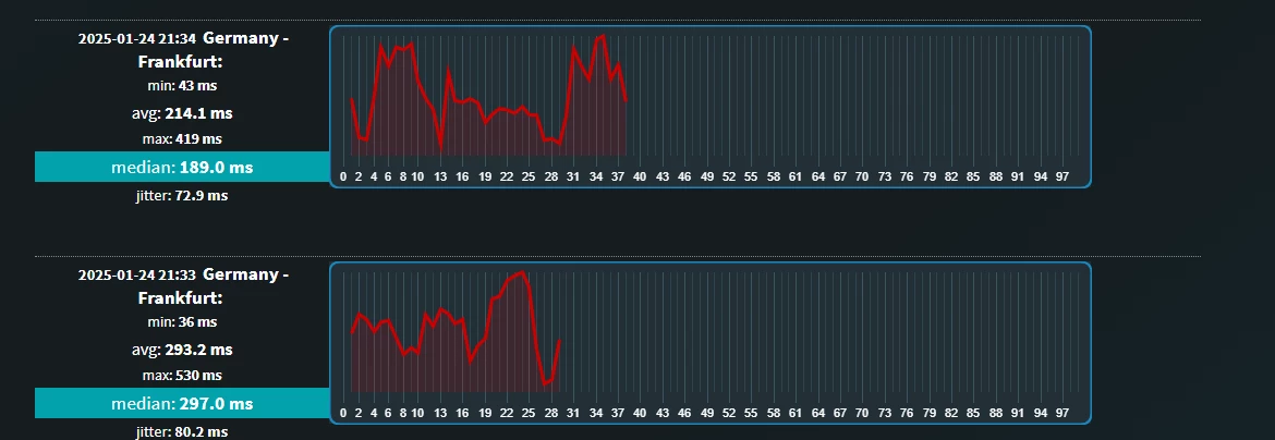 Hallo. habe mal wieder Internetprobleme. es hat zwar ein paar Monate Störungsfrei funktioniert, jedoch ist seit ein paar Wochen absolut nicht mehr zu ertragen. Das Problem ist folgendes: Ich habe eine extrem Schwankende Latenz (100-500ms) vorher lag diese bei durchschnittlich 50ms und war auch relativ stabil.