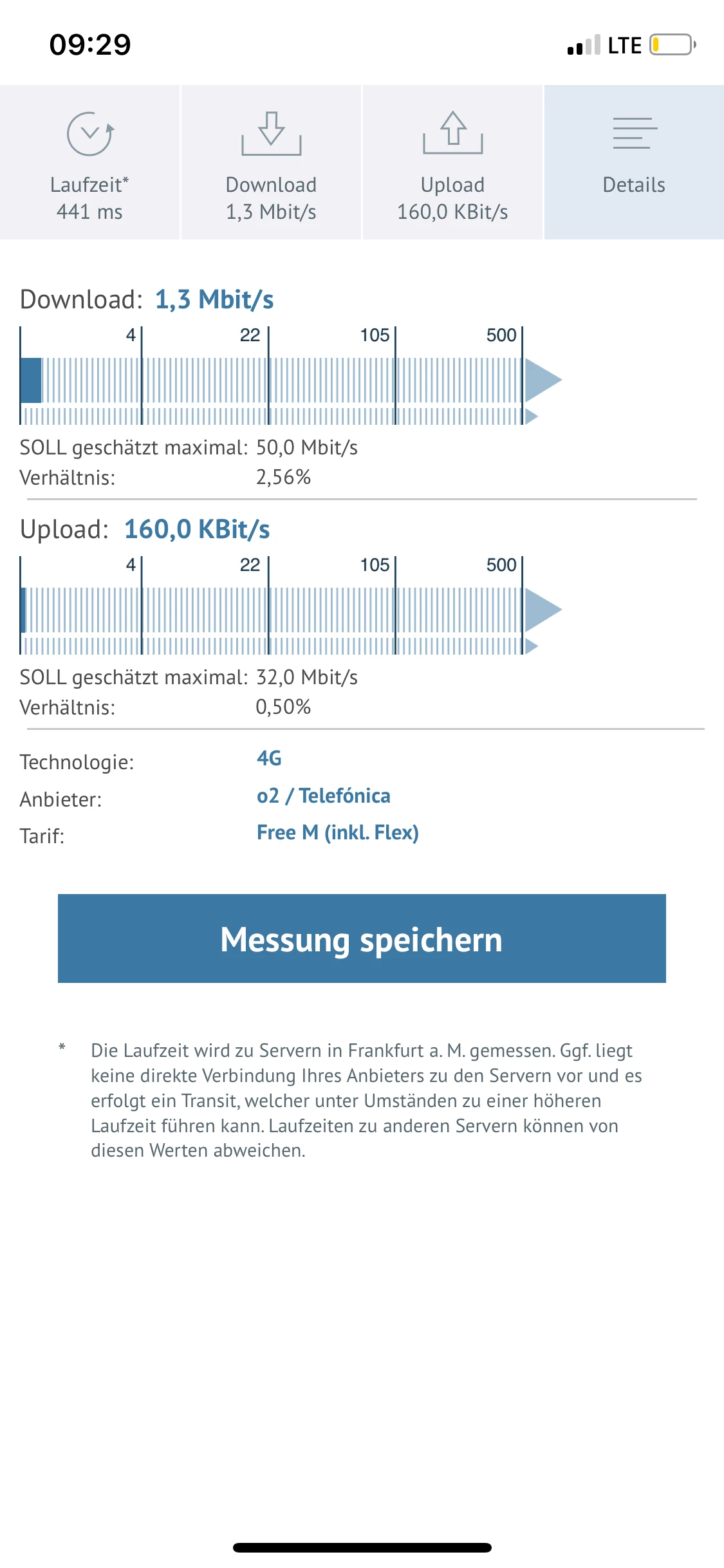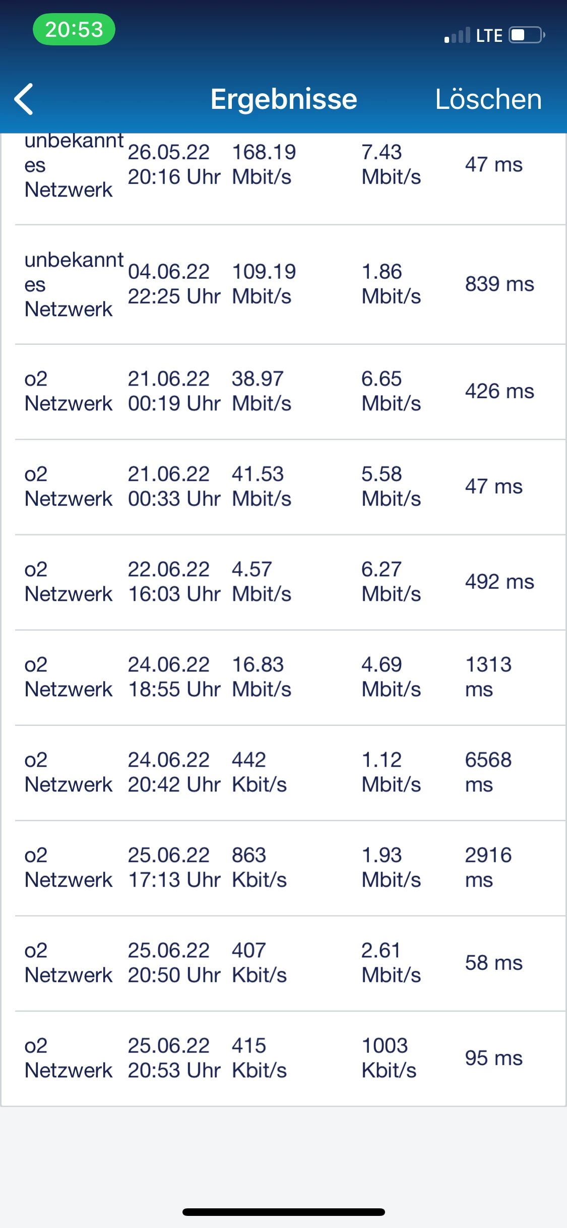 Mein Diensthandy ist mit einerVo…karte, Dort habe ich am selben Ort , Download um 95Mbit/ Upload 24 Mbit.