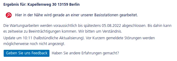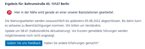 ob dort vielleicht einer größere Störung eingetragen ist. Dort kannst du dann auch, über den Feedback-Button,