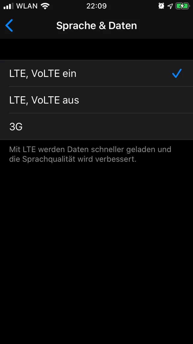Jetzt kann man nämlich LTE - VoLTE - ein oder LTE - VoLTE aus