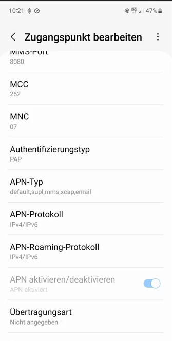 2. Über die Seite https://www.o2online.de/service/handy-einstellungen/ die richtigen APN Daten erneut zugesendet.