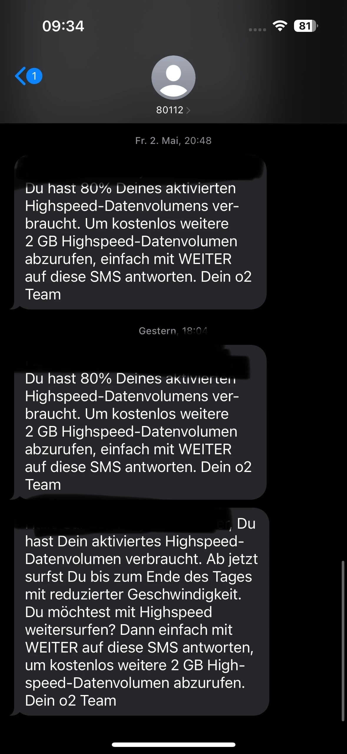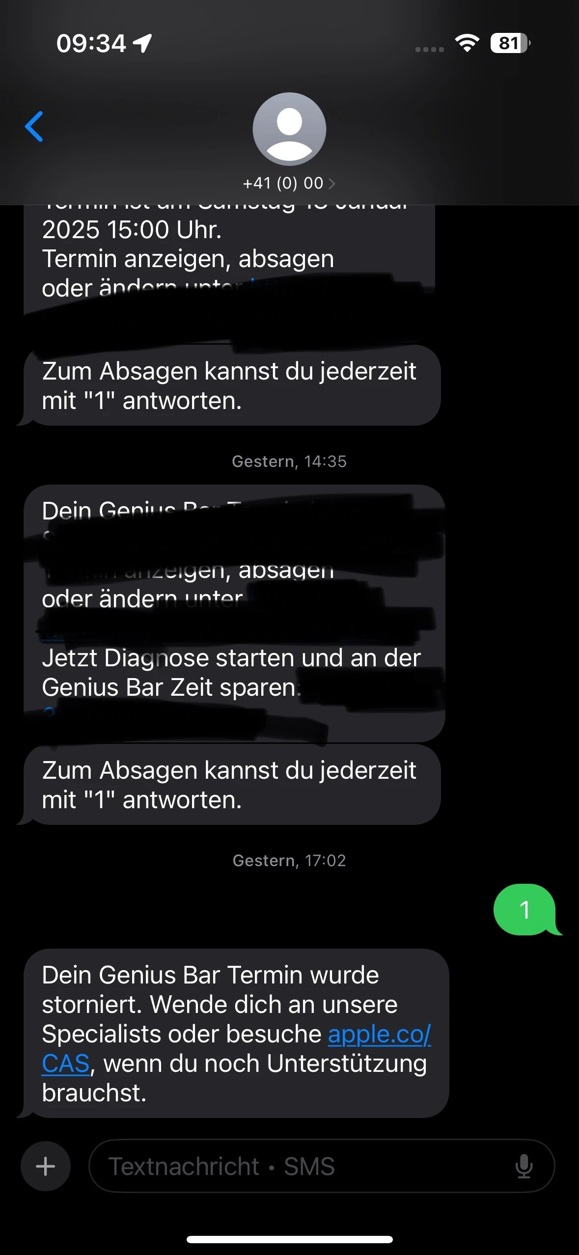 Alles gestern bei Apple gemacht worden jetzt könnte ich das Handy komplett neu aufsetzen lassen mit Software komplett runter und neu rauf aber das wollte ich eig vermeiden weil das halt paar Stunden wohl dauert(soviel Zeit hatte ich gestern einfach nicht)  und ich hatte gestern schon bei Apple mein Handy zurücksetzen lassen und dann das Backup wieder aufspielen lassen (deswegen ist der Chat halt wieder da mit 80112) nachdem der Fehler auch ohne meine Daten da war das sind einige Nummern an die ich keine SMS schreiben kann aber das sind halt keine Nummern eingeblendet sondern der Name wie „Netzservice, o2 Info usw“