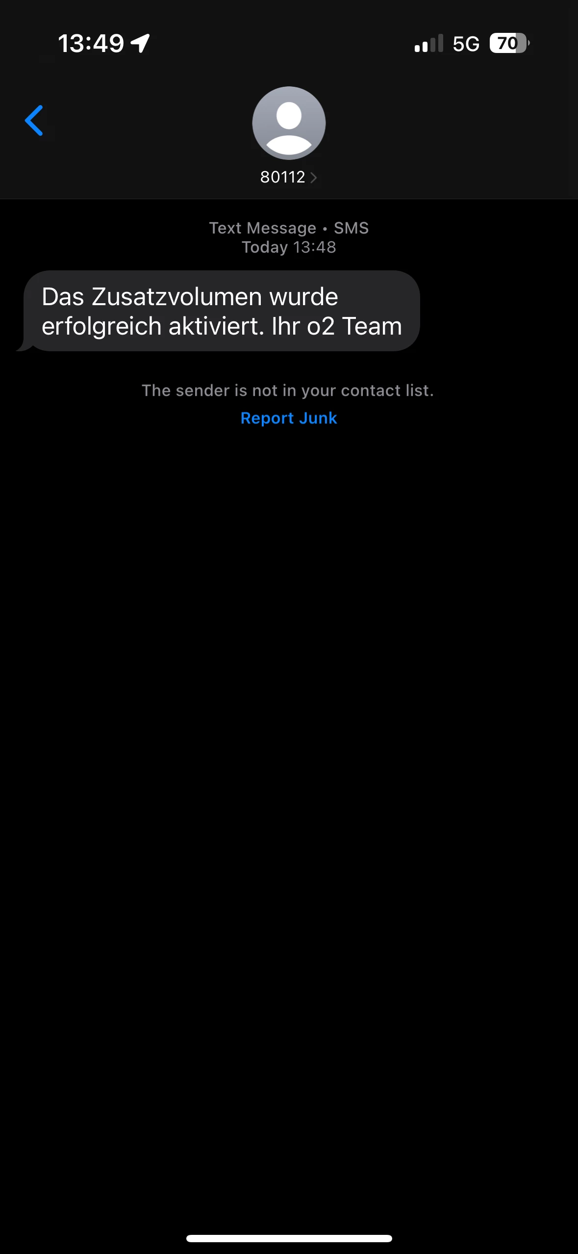 Und wenn du einfach versuchst eine neue SMS an 80112 zu schicken? Noch scheinst du in der bestehenden Konversation antworten zu wollen. Zwar sollte das auch gehen, dein Handy macht aber warum auch immer damit Probleme.