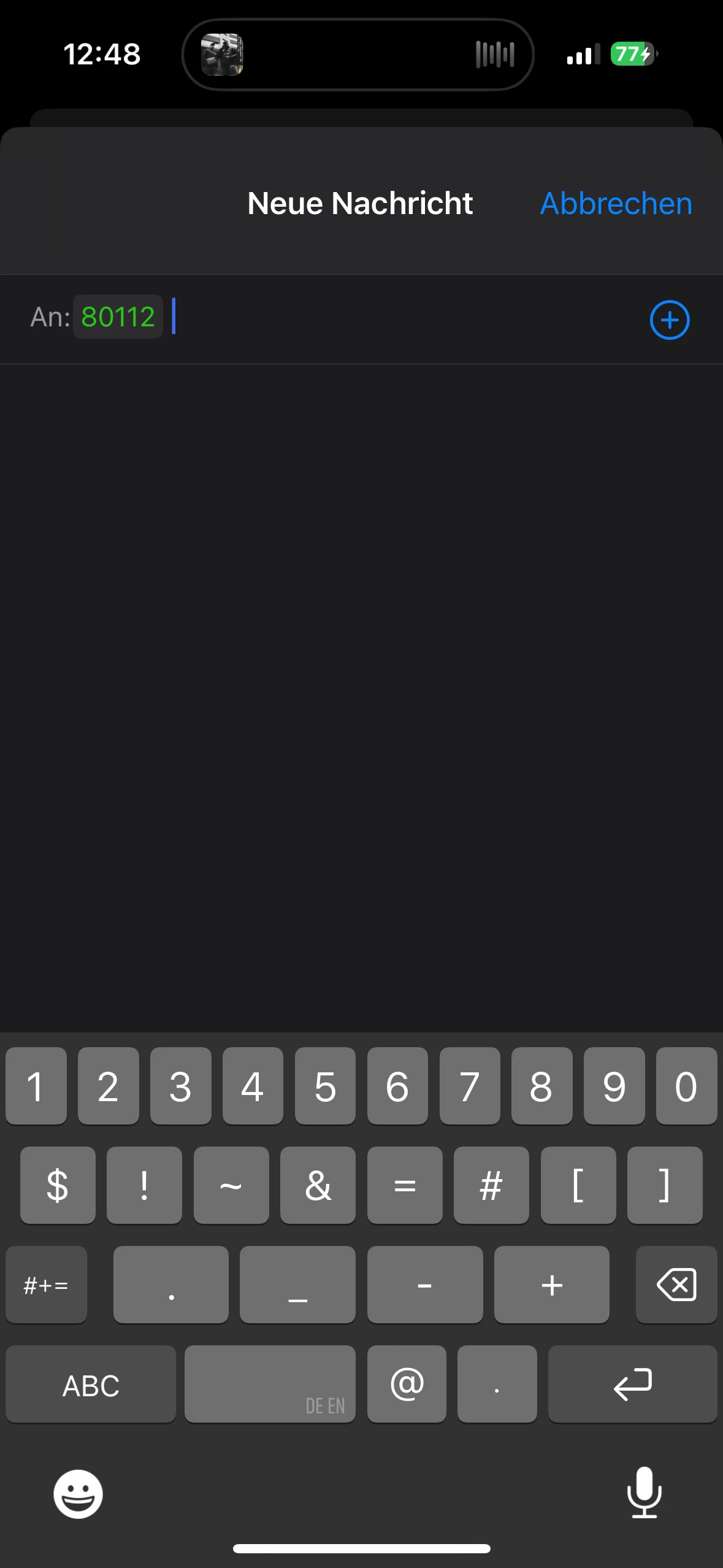 kann keine sms an 80112 schicken