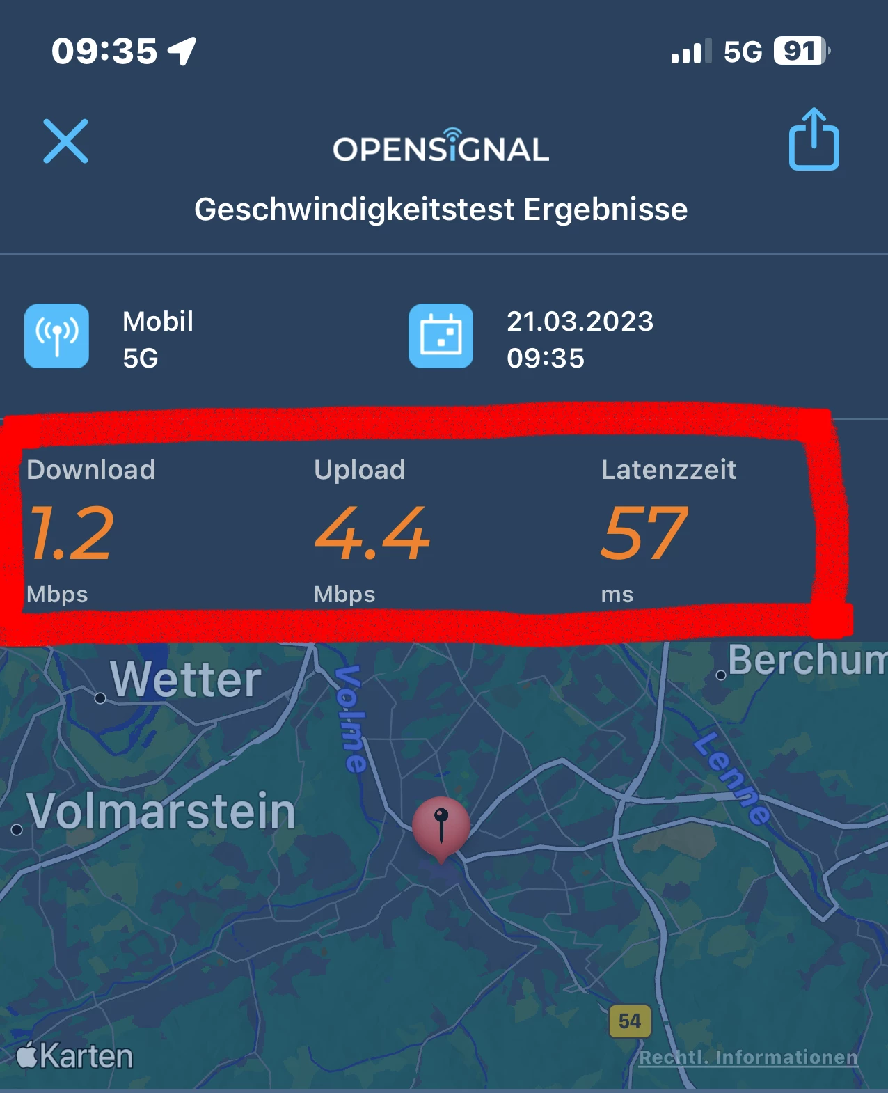 Ich hab auch mit SPEEDCHECK und OPENSIGNAL mal einen Geschwindigkeitstest gemacht.