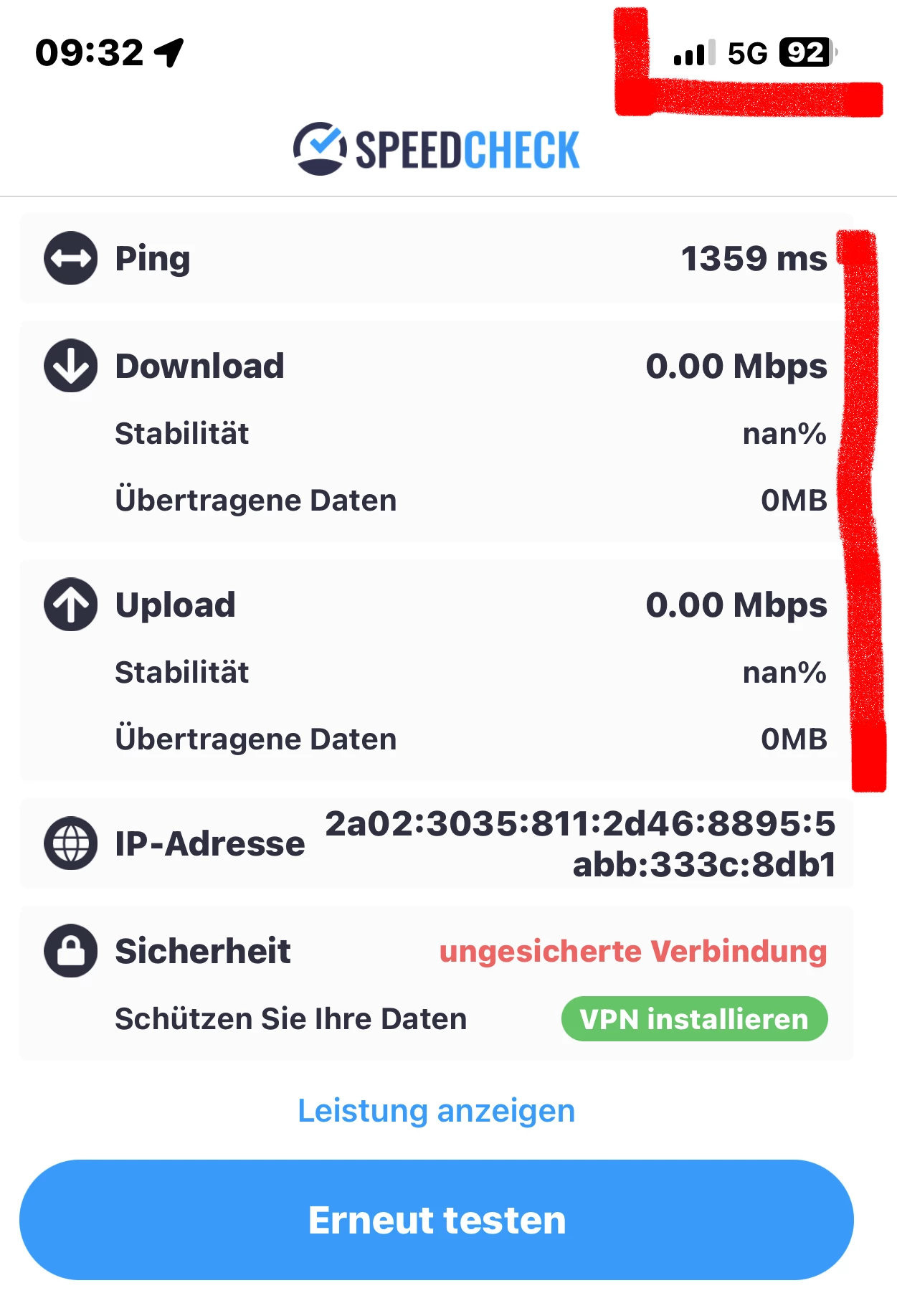 Ich hätte 5G mal abgeschaltet und es nur mit LTE versucht, diese Einstellungen hast du im iPhone. Glaube nicht, das es am iPhone liegt, 5G hat bei meinem bisher immer funktioniert.