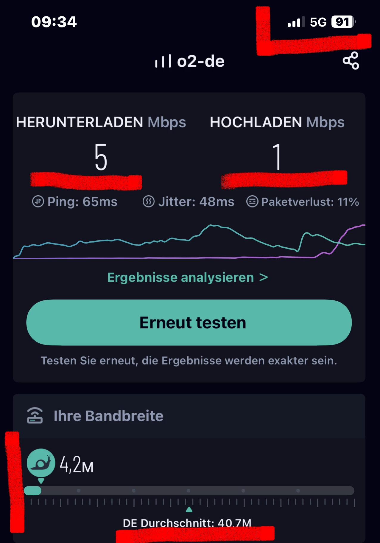 Kaum Netz trotz 5G Anzeige - liegt es am Handy ?