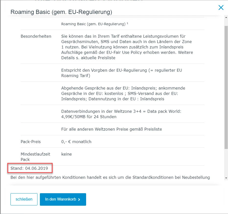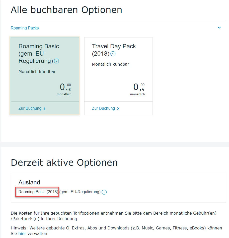 Das bei mir aktuell aktive Roaming ist Roaming Basic (2018) … in meinem Account wird mir die buchbare Option Roaming Basic (Stand 2019) angezeigt?