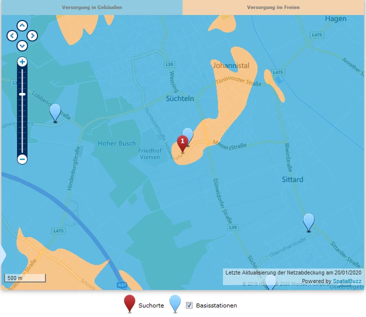 Hallo 02 ich habe mal eine Frage warum ich kein Lte Empfange in 41749 Viersen Hōhenstrasse 52 obwohl laut Netzkarte die nächste funkantenne 80 Meter entfernt liegt ???
