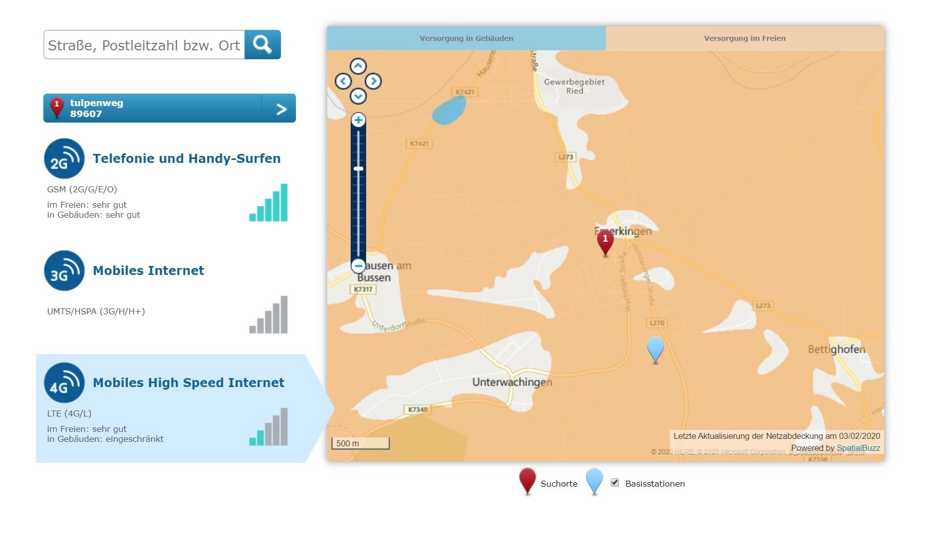 Nachdem diese Orte ziemlich weit entfernt sind, kann man in Emerkingen keinen LTE Empfang erwarten. Ich hoffe dass o2 die Netzabdeckungskarte bald mal überarbeitet, und die neue “Balkenanzeige” einpflegt. Denn momentan gibt es beim Outdoorempfang nur zwei Abstufungen: