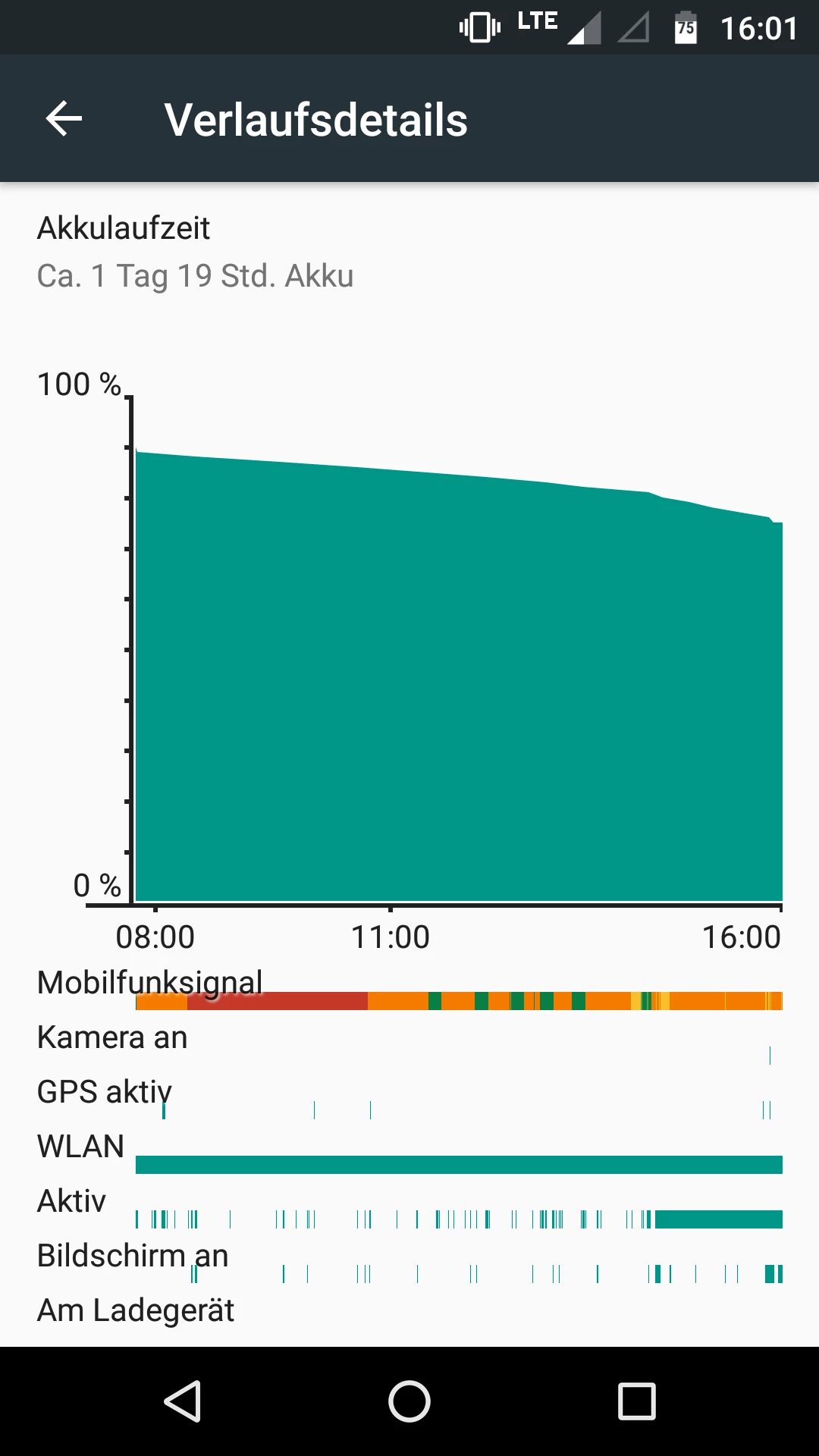 Man sieht auch schön in der Akkübersicht wie es mir den Akku leerzieht  das Moto Z Play ist ein Akkumonster, daher ist das unten nicht so spektakulär. Meinz OnePlus X oder mein Nexus 5 ist nach so einem Morgen fast platt.......