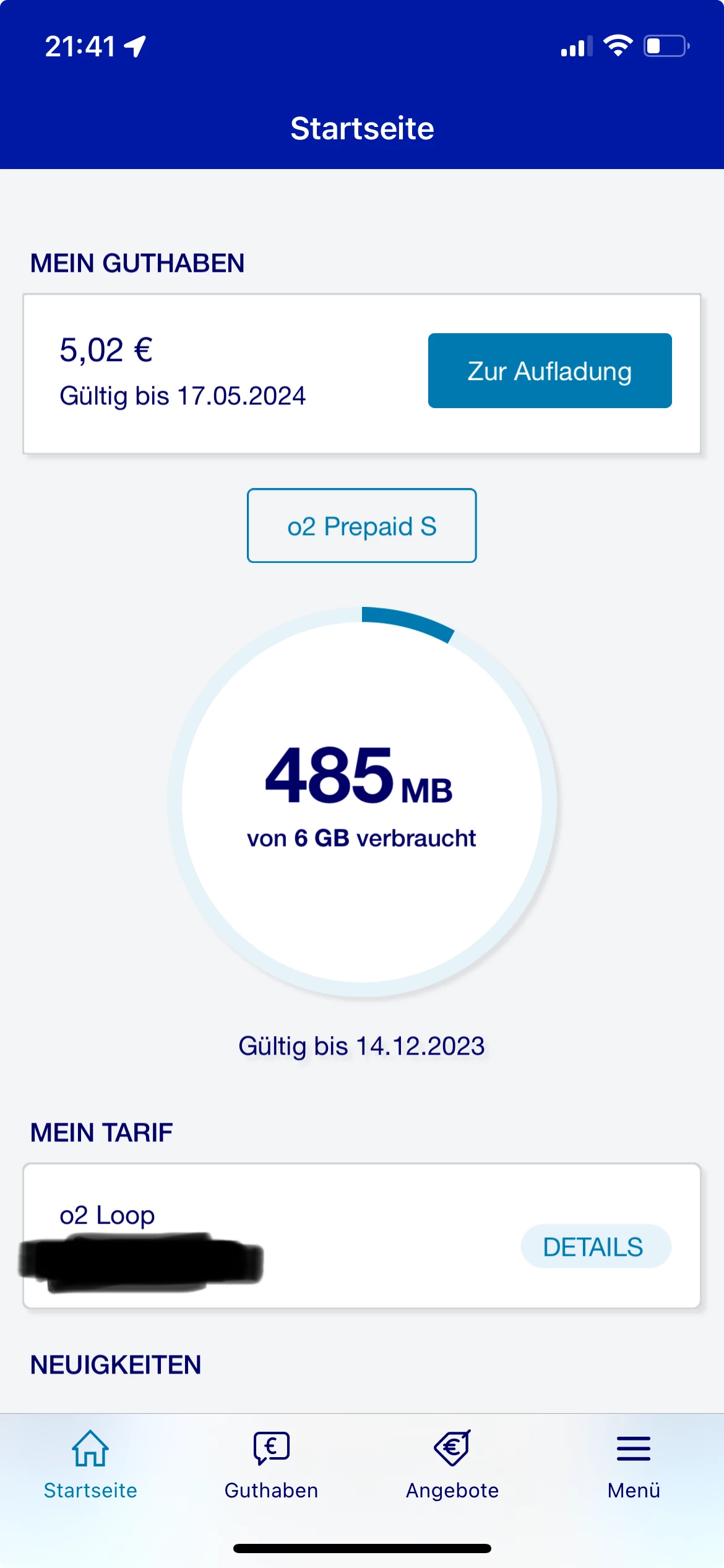 Ich habe O2 Prepaid S geholt mit 6 GB Datenvolumen
