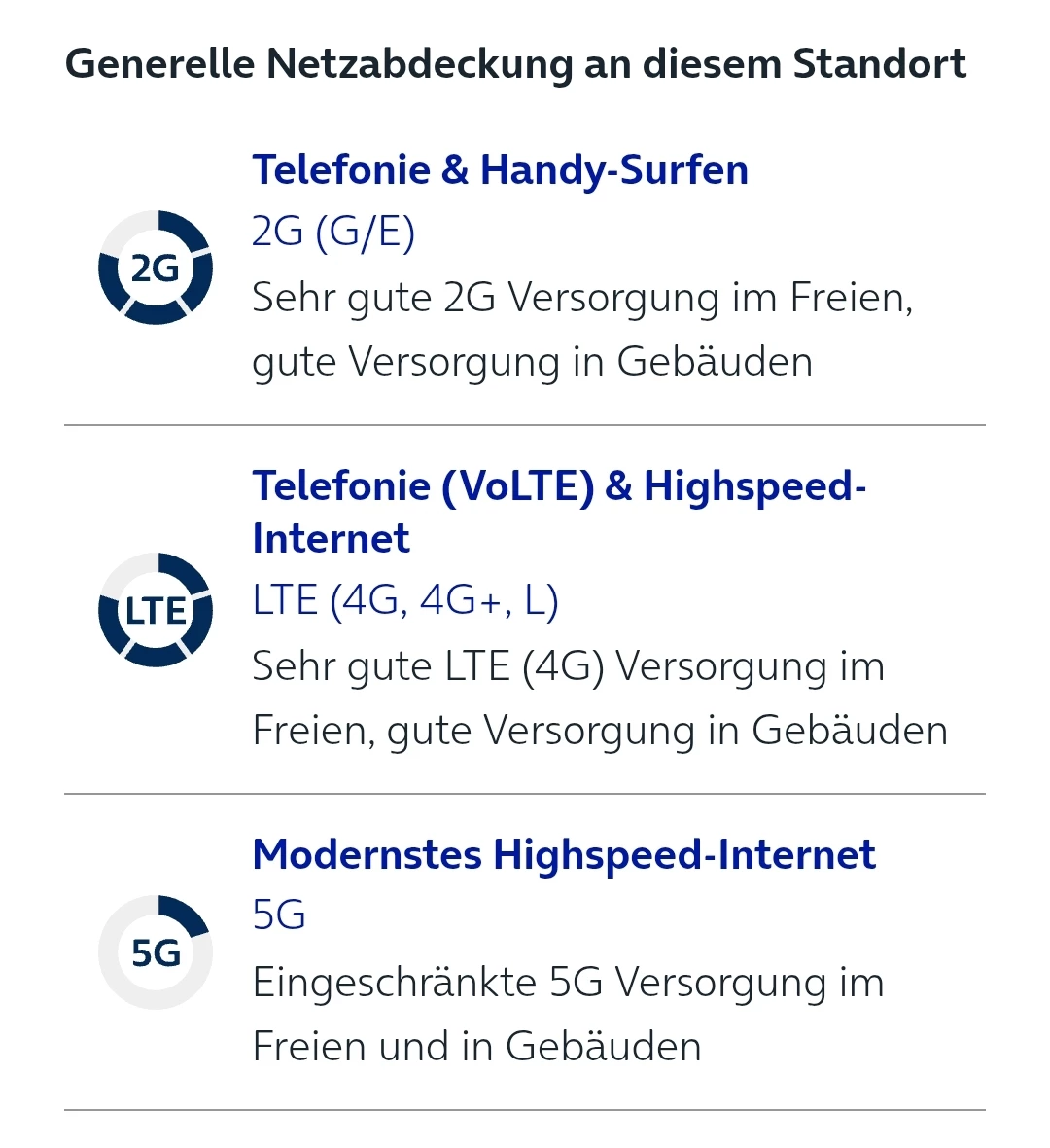 Im November 2024 wurde ein Mobilfunkmast in meiner nähe abgebaut seitdem hatte ich kein mobiles Internet in meiner wohngegend. Das hatte ich dann mitte Januar gemeldet wo mir das mitgeteilt wurde woran das liegt( netze überlastet durch mobilfunkmast abbau) das haben die dann alles aufgenommen und ungefähr vor 2monaten hatten sie den mobilfunkmast anscheinend wieder aufgebaut. Alles schön und gut aber nichtsdestotrotz hab ich seit November 2024 kein netz in meiner Wohnung und kann auch keine anrufe tätigen oder entgegen nehmen ohne mit dem W-lan verbunden zu sein. Es funktioniert nur wenn ich draußen bin ungefähr 30m von meiner Wohnung entfernt. Vor ein paar Tagen hab ich es dann erneut bei o2 gemeldet das ich trotzdem zuhause kein netz habe die haben es weiter geleitet und gestern hab ich dann die sms bekommen das sie keine technische beeinträchtigt festellen konnten und haben mich auf diese Hilfe-seite hier weitergeleitet.  Da ich W-lan anrufe aktiviert habe kann ich aktuell noch anrufe entgegen nehmen, ich finde es aber trotzdem schade das ich Zuhause nicht ohne wlan anrufe telefonieren kann.