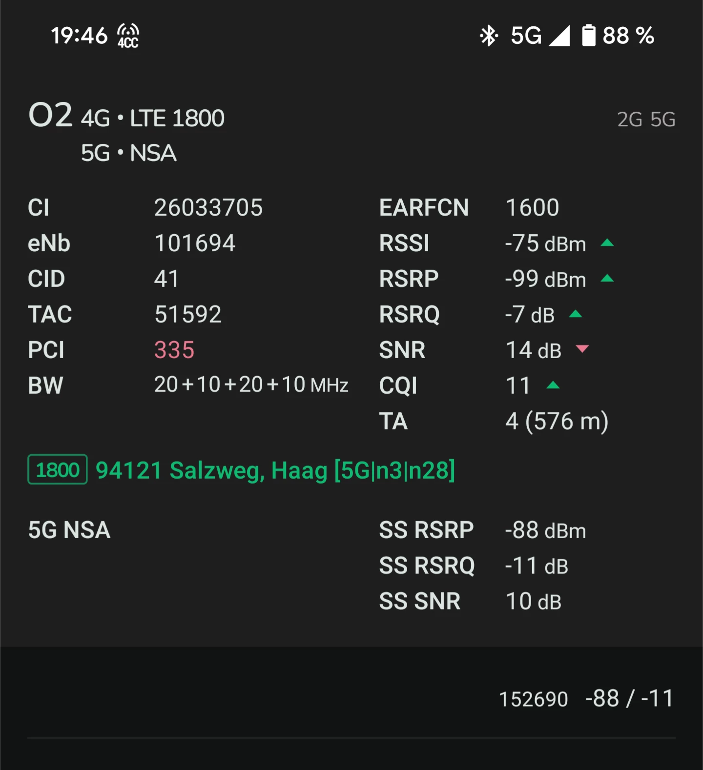 Ich habe nun einen Funk Masten gefunden wo ich mich erfolgreich in 5g einbuchen konnte.