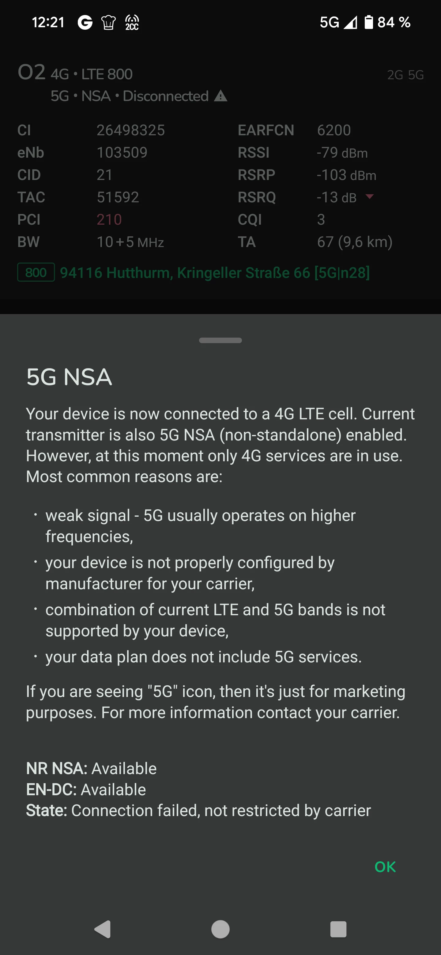 Ich hab mich auch schlau gemacht warum 5g am Handy angezeigt wird. Das zeigt nur an das es verfügbar wäre aber bestätigt eben nicht das ich verbunden bin. Eine Verbindung kann auch von der geringen Signalqualität nicht zu Stande kommen. Trotzdem wäre es verfügbar.