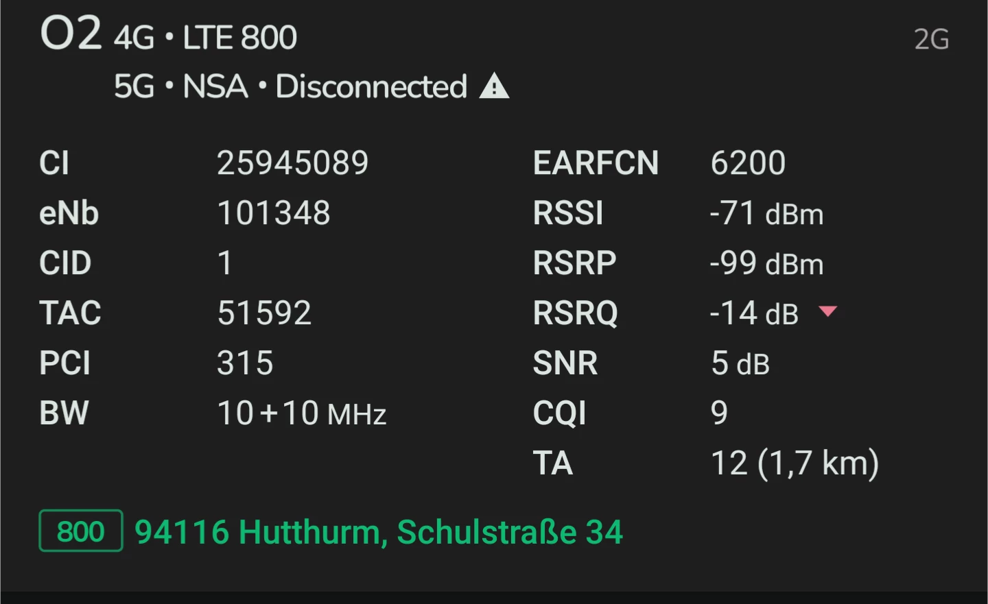 5g plus deaktiviert und an verschiedenen Masten getestet.