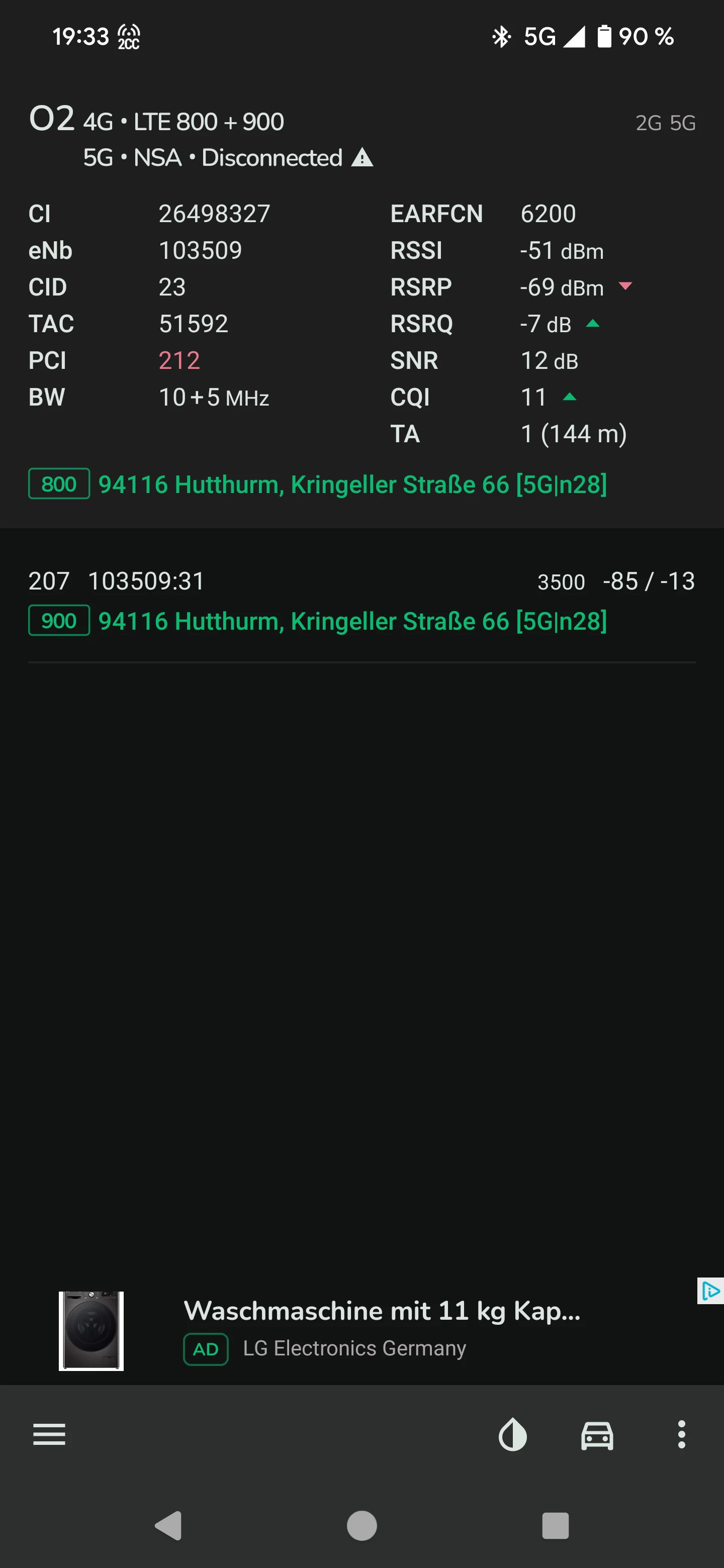 Kein einbuchen in 5g. Siehe Screenshots. Somit hat wohl ganz Hutthurm kein 5g.