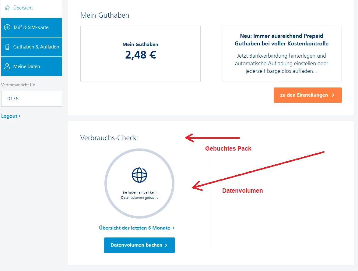 Dort solltet du das Startguthaben und die Abbuchung des Packs sehen können.