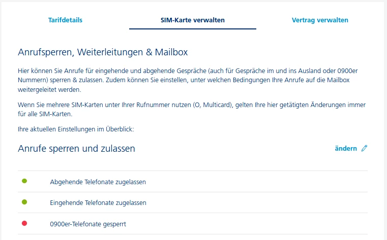 auf der mein o2 seite steht bei Telefonie alles mit einem grauen punkt als inaktiv :/ aber auch bei SMS, aber die kann ich ohne Probleme senden.