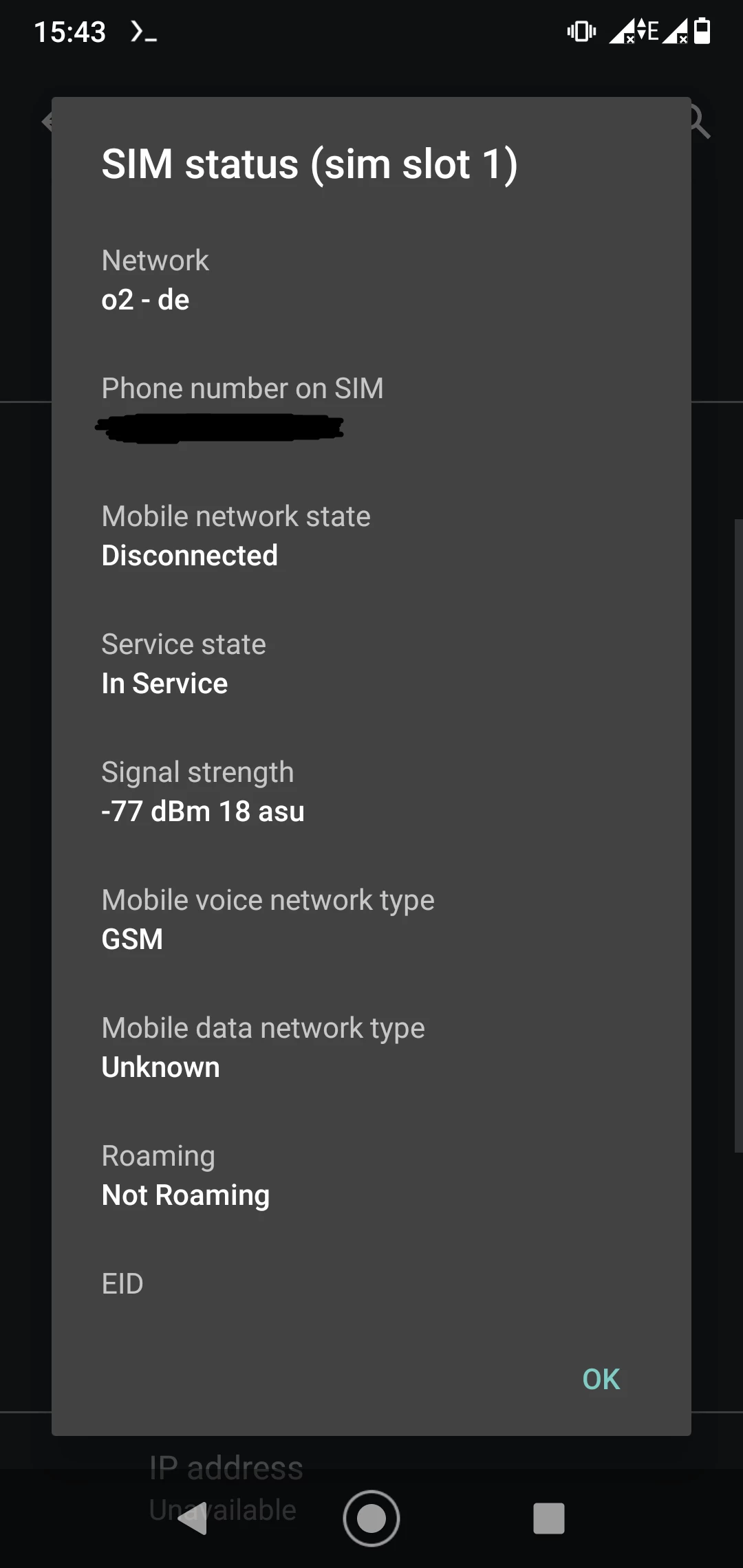 Mit den anderen Netzmodi kann ich auch keine mobilen Daten nutzen. Ich bekomme als Netztyp sowieso nur noch EDGE (vorher 4G), aber es lassen sich praktisch keine Daten übertragen. Wenn man andere Server anpingt gehen da sehr vereinzelt mal pings durch, aber das reicht nicht mal, um z.B. bei Whatsapp eine Textnachricht zu versenden.