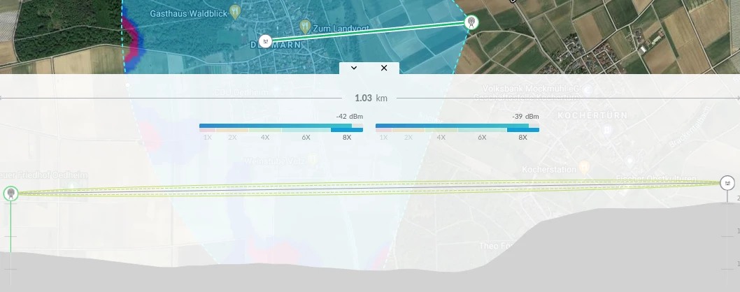 gut, ich denke das Problem kann hier sein, dass die nächstgelegenste Basisstation von o2 hier etwas niedriger liegt, als dein Wohnort. Die Station befindet sich östlich von dir, auf einen Hochspannungsmasten: