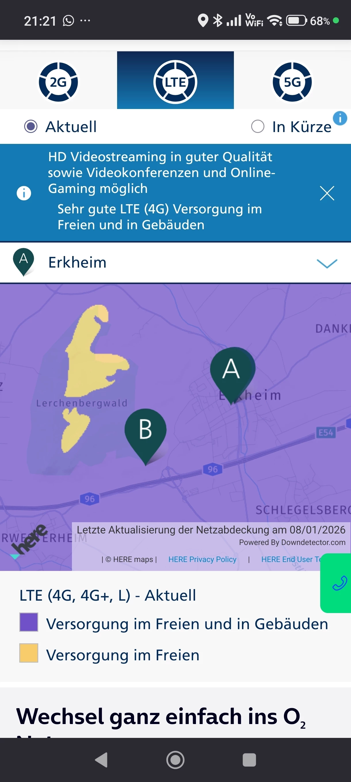 Station B ist eine o2 Station, mit LTE 800+900 und 5G 700.