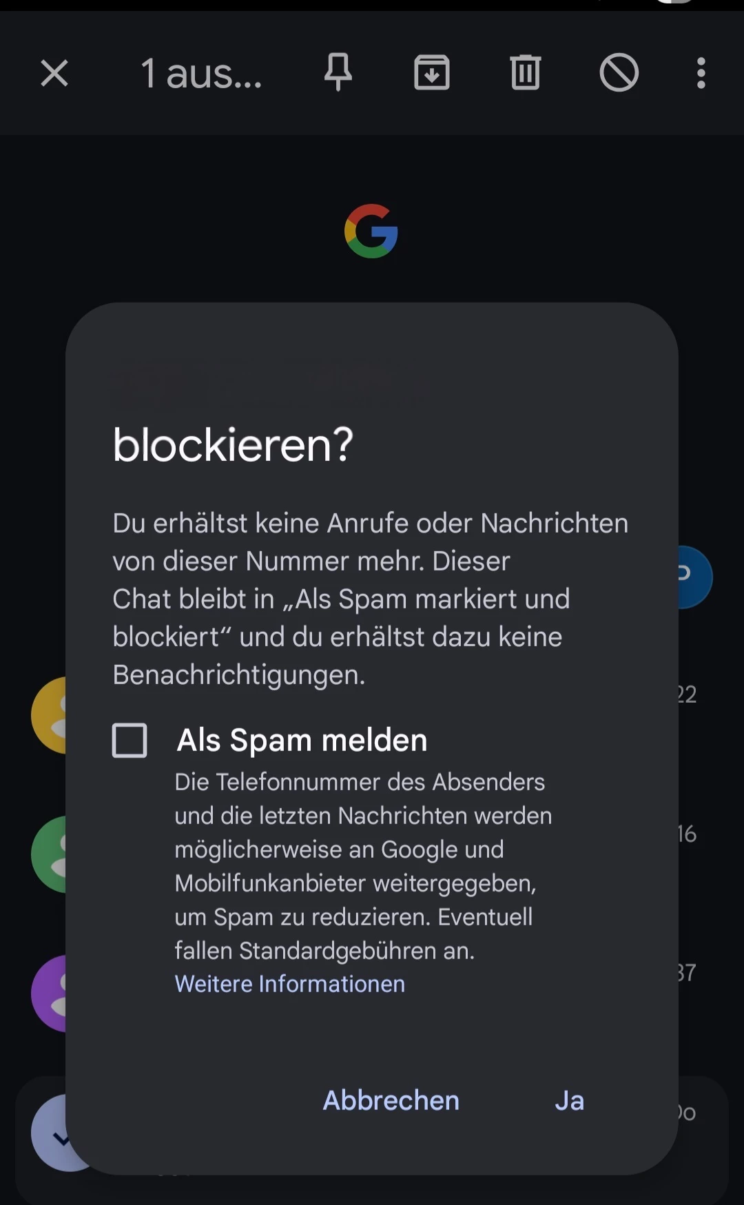 Die Annahme, dass Google einfach Bullshit erzählt, aber o2 nicht überzeugt auch ziemlich wenig. Nachrichten als Spam zu markieren funktioniert bei Google seit mindestens 5 Jahren und hat zu keinem Zeitpunkt Kurzwahl-SMS ausgelöst. Natürlich ist es deutlich wahrscheinlicher, dass der Google-Support einfach lügt, als dass o2 ein Problem hat? Warum sollte das so sein?
