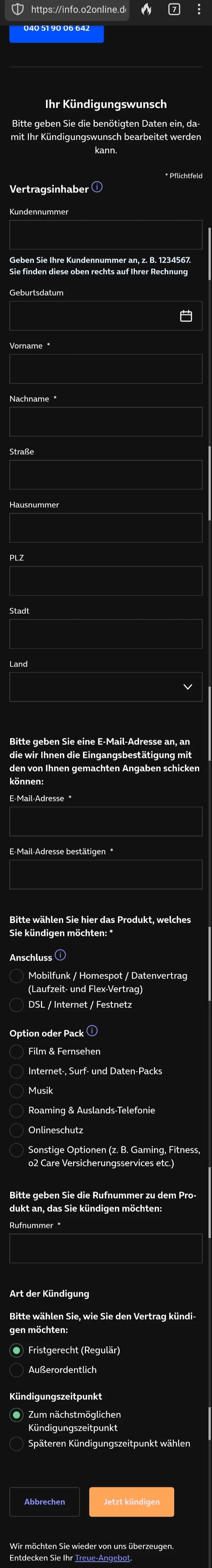 Ja, darüber hab ichs ja gemacht. Aber wenn du das mal probierst, siehst du was danach für verwirrende Weiterleitungen kommen. Bin dann irgendwann in der Browserversion von Mein O2 gelandet, wo ich erstmal nirgendwo eine Online-Funktion zur Kündigung gefunden hab. Hat ja dann auch irgendwann geklappt.