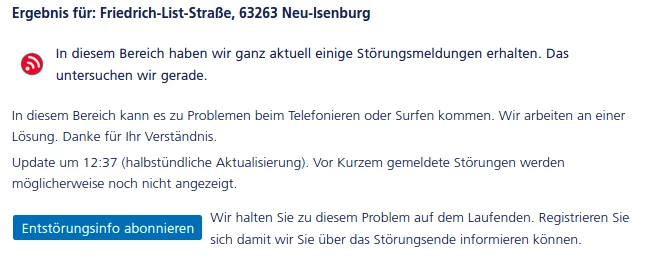 Schaue auch gerne in unseren Livecheck , ob noch eine Einschränkung vorliegt.