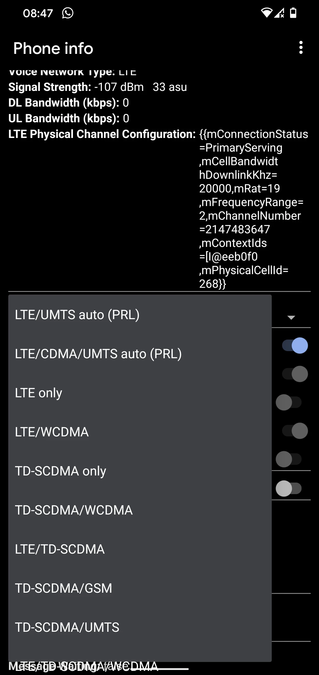 Welche Option soll ich wählen in preferred system network? Mit LTE Only - sms funktioniert nicht anrufen auch!