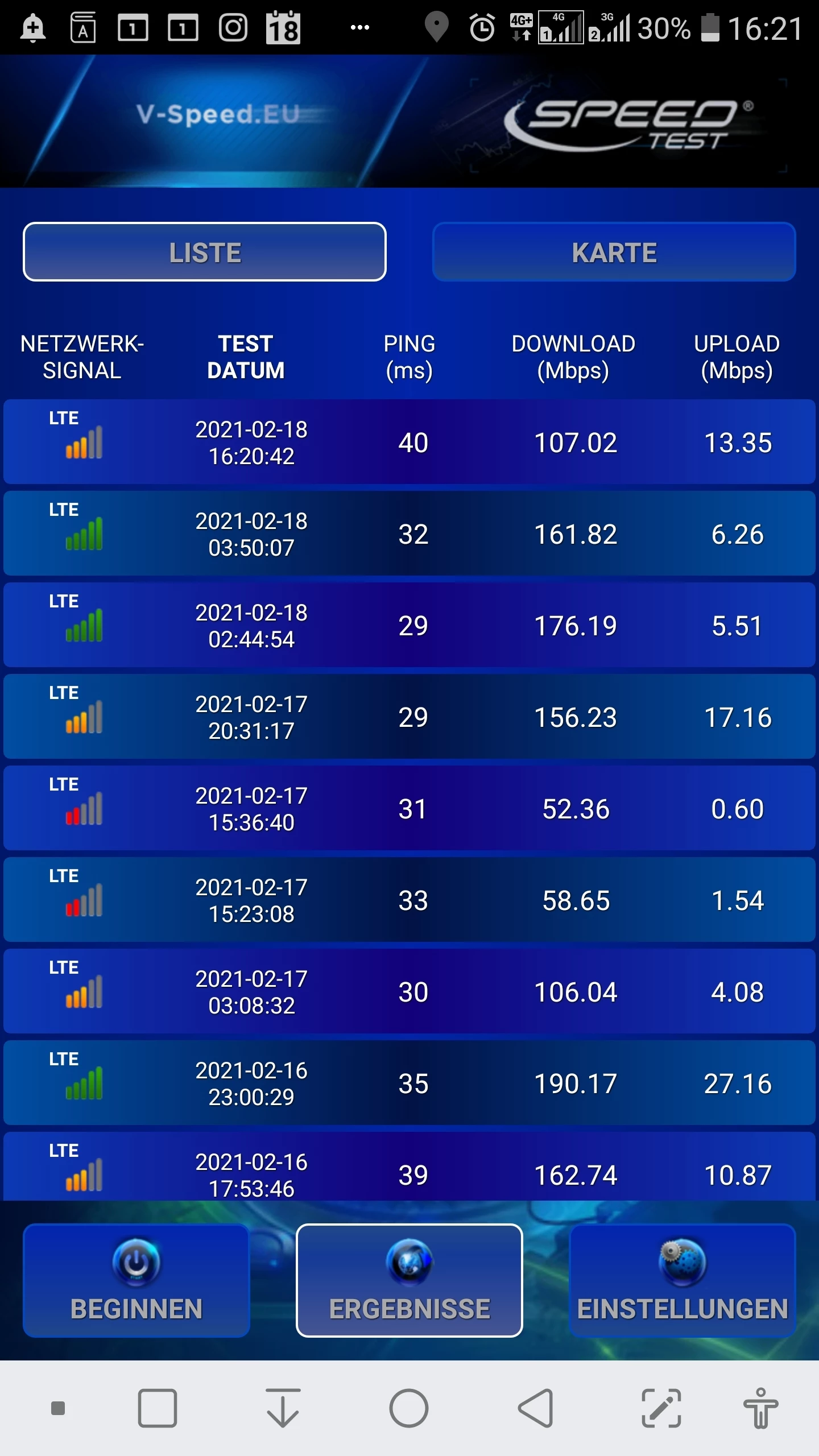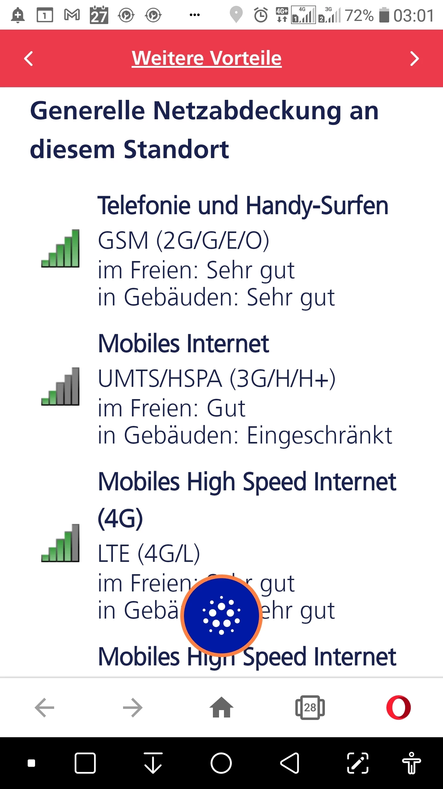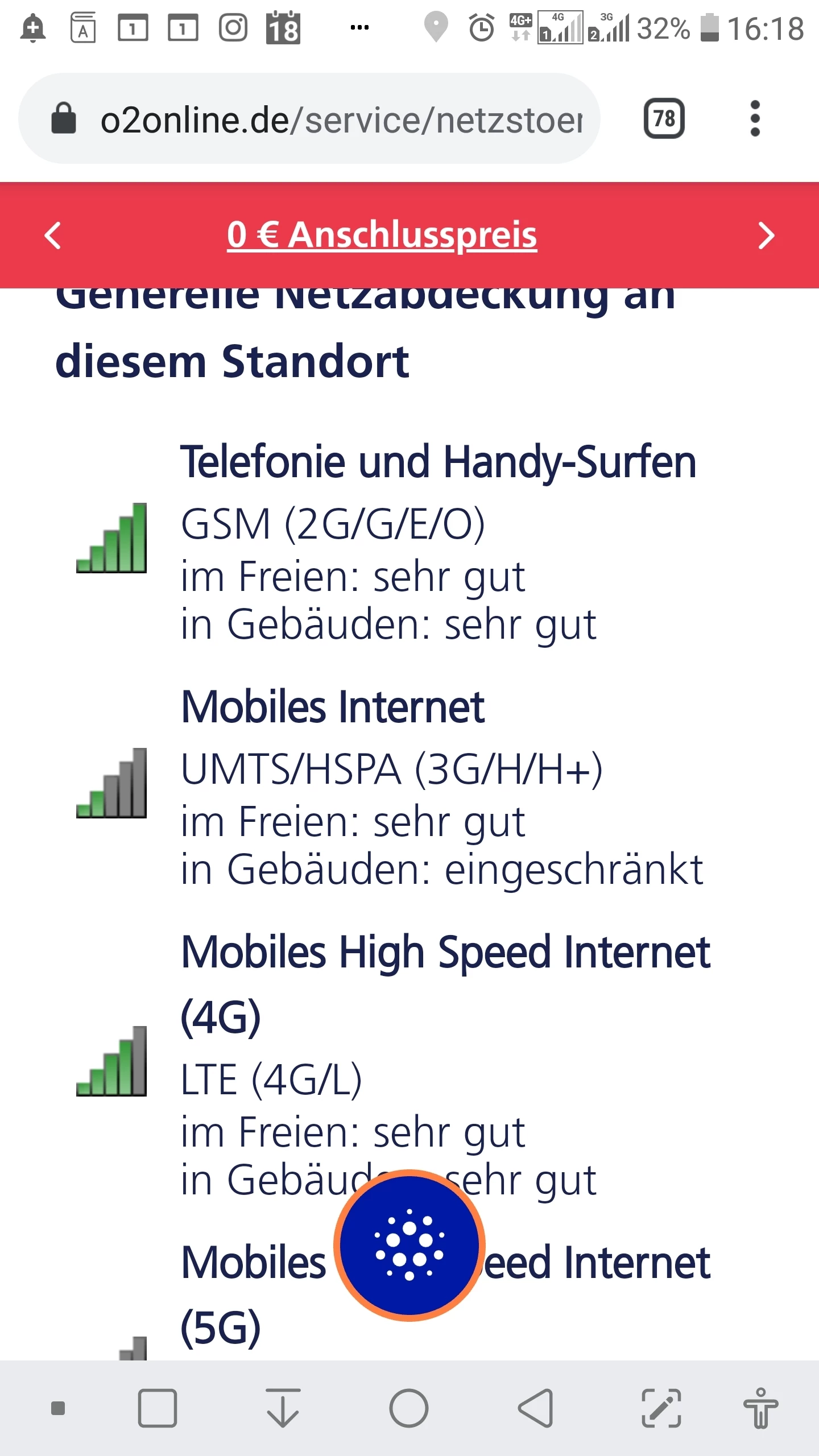 Es wechselt immer zwischen "kein Netz" (manchmal ist alles tot - × // manchmal funktioniert nur Telefonie mit SMS // manchmal funktioniert alles kurzzeitig), 2G, 3G und 4G hin und her.