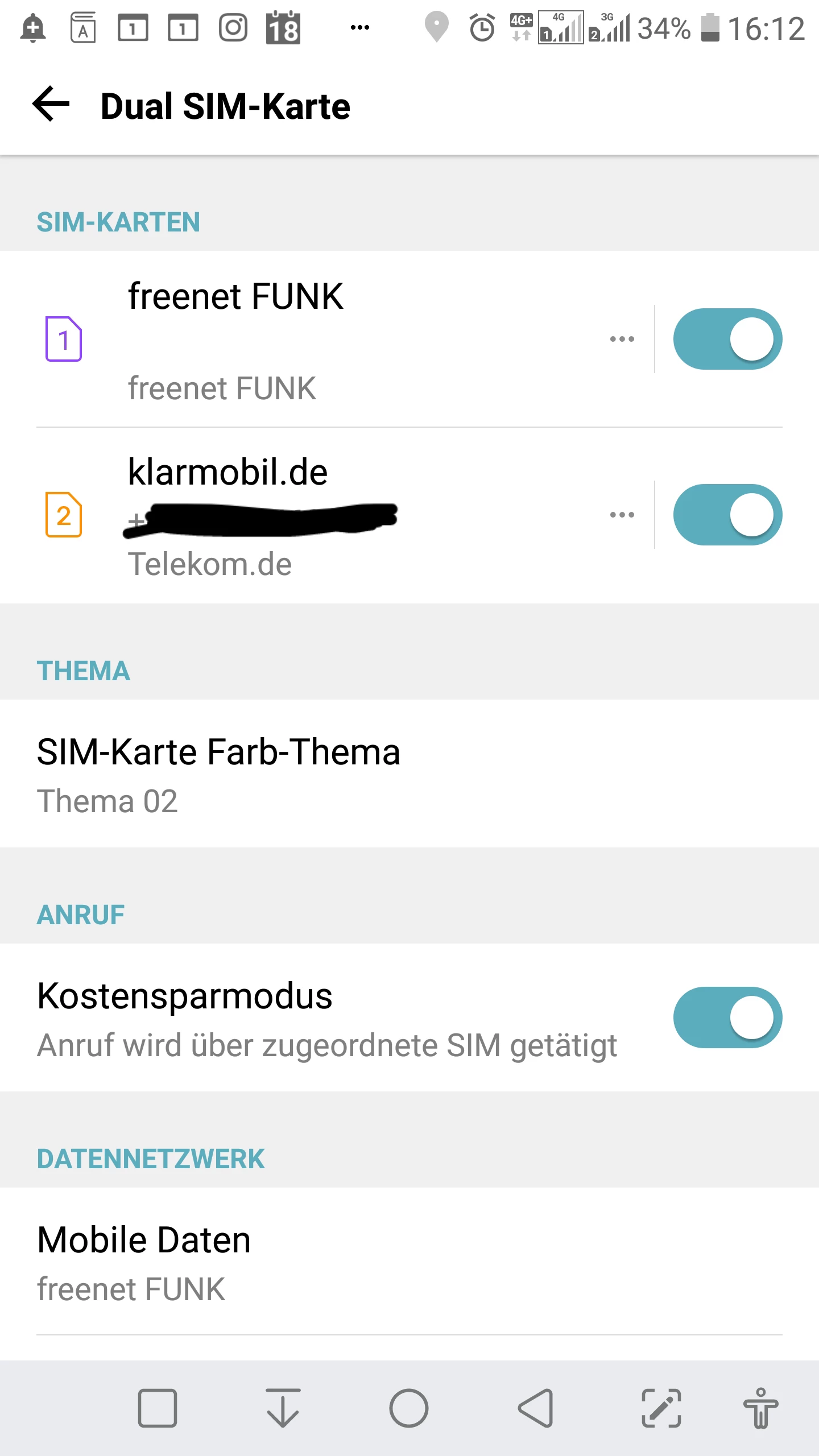 Wenn ich 'Mobile Daten' auf die Sims 2 schalte, ist bei SIM 1 (freenet FUNK - O2) Telefonie und SMS auch verfügbar / ... wird jetzt permanent 2G angezeigt - da müsste aber 3G angezeigt werden.