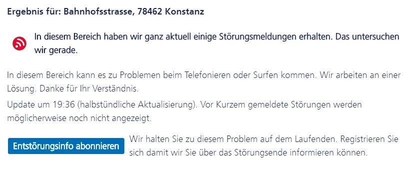 Also es betrifft nur die Region 78462 Konstanz Bahnhofstrasse. Hier hab ich auch geschaut laut dem Checker verfügbar