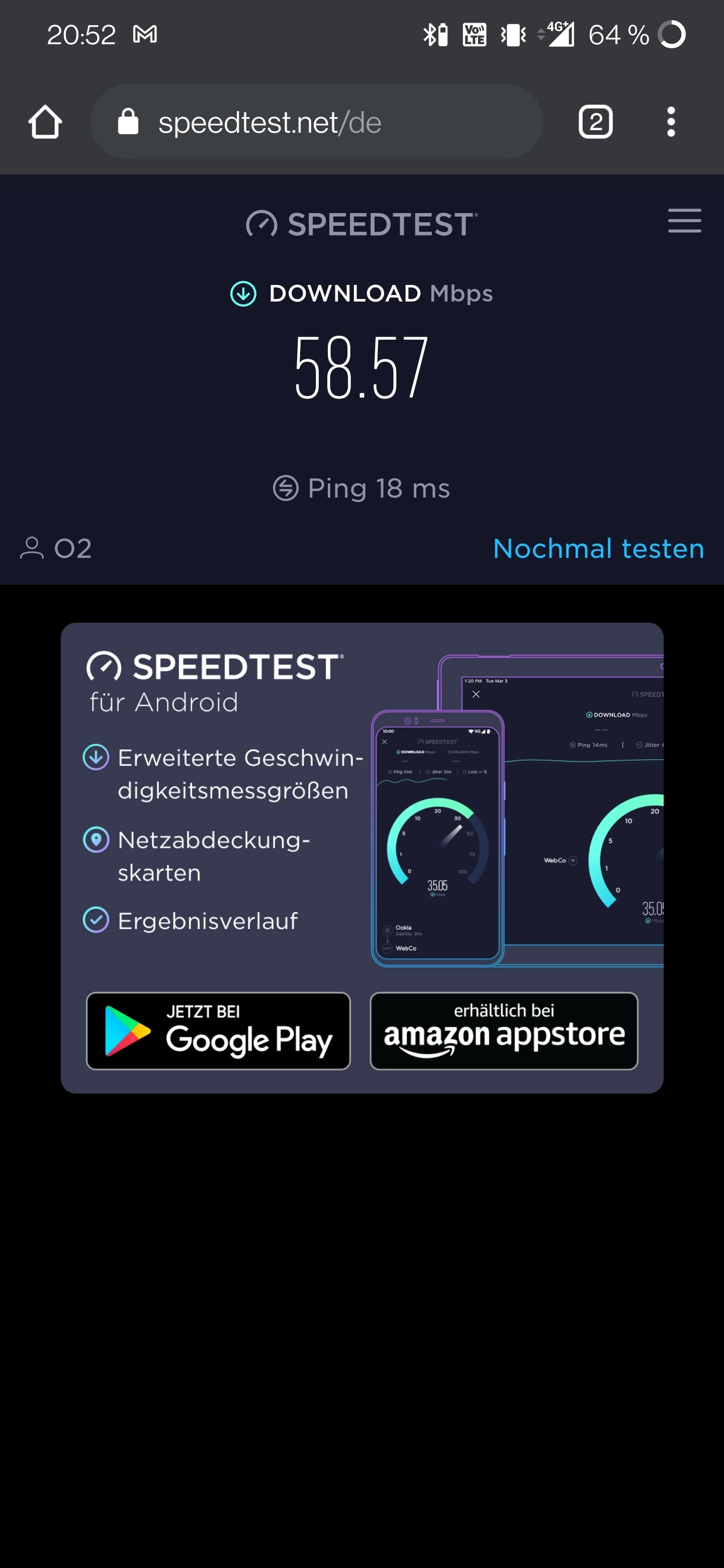 Ja klar, die knapp 60 Mbit sind schon gut. Aber ich denke LTE Geschwindigkeiten sollten halt anders aussehen…