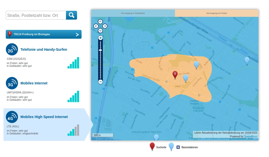 Ich Wohne in Freiburg PLZ 79114 leider bin ich gerade unterwegs und der Aufbau der Seite ist wie erwartet langsam trotz 4G Anzeige.