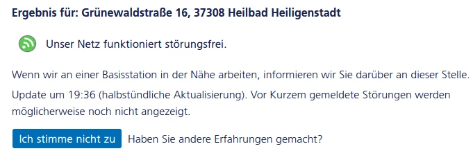Ich habe zudem soeben mal geprüft, wie das Netz in deinem Wohnort angezeigt wird. Netzstörungen konnte ich hier ebenfalls nicht feststellen.