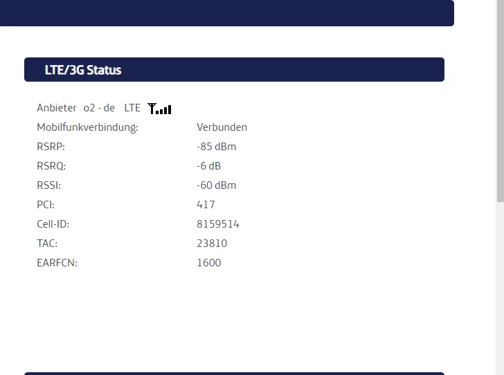 der Mobilfunkkmast scheint auch völlig überfordert sprich überlastet zu sein weil seid wochen nur 2 mbits ankommen (vorher 90/120 Mbits im download Upload 30mbits)  die Jetzige Mobilfunkzelle ist 8159514 die sehr Überlastet ist.