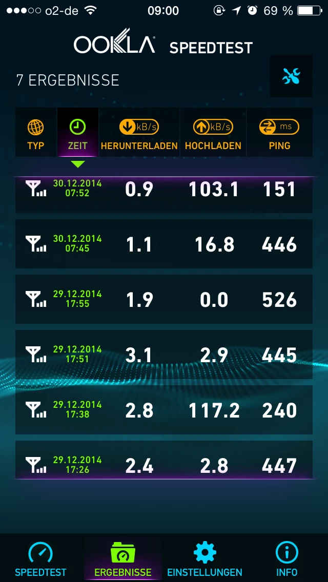Habe mir Ookla Speedtest im WLAN runtergeladen und es im O2 getestet.