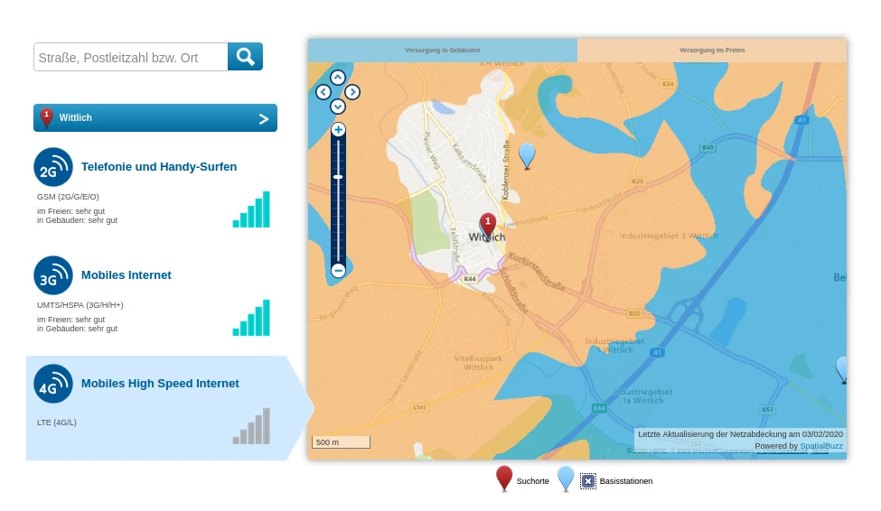 laut Netzabdeckungskarte gibt es in Wittlich noch kein LTE: