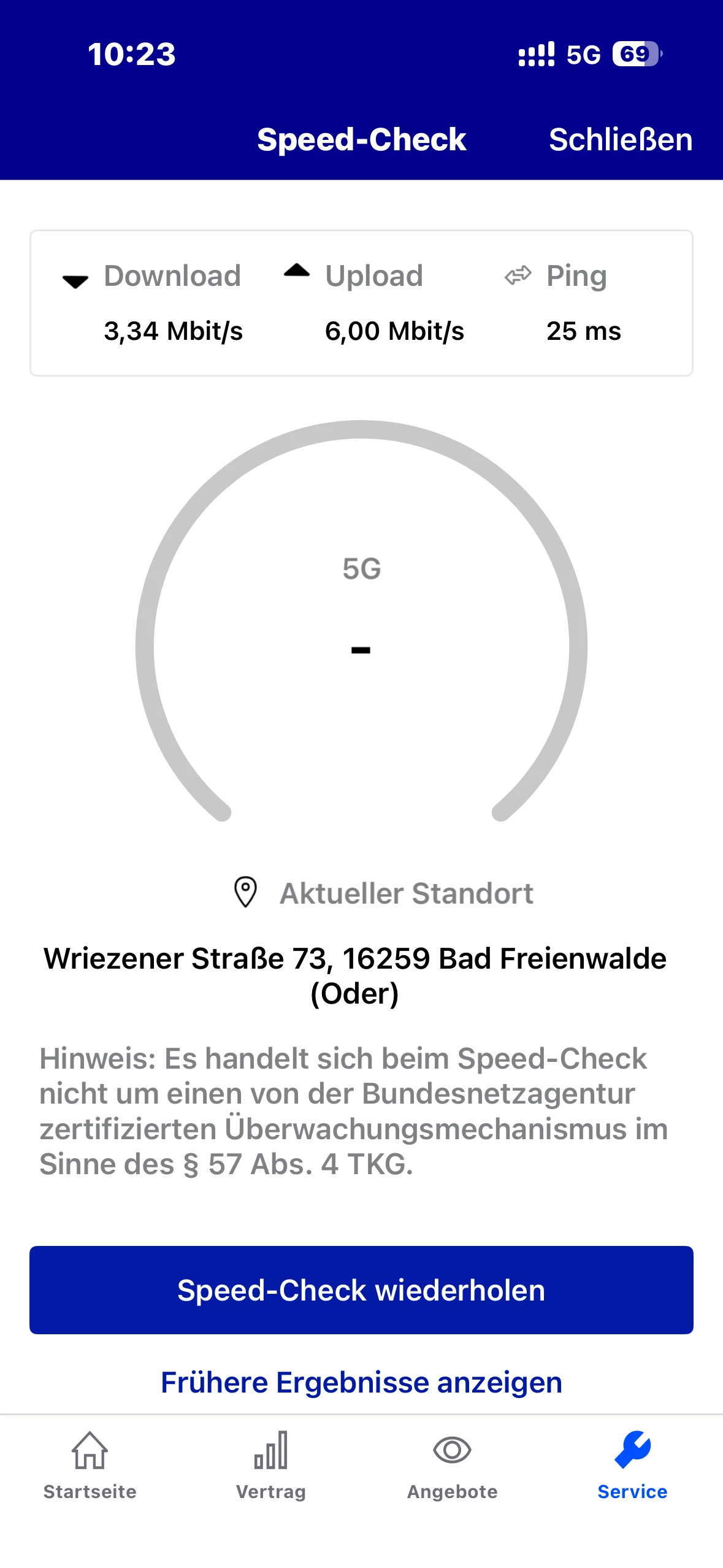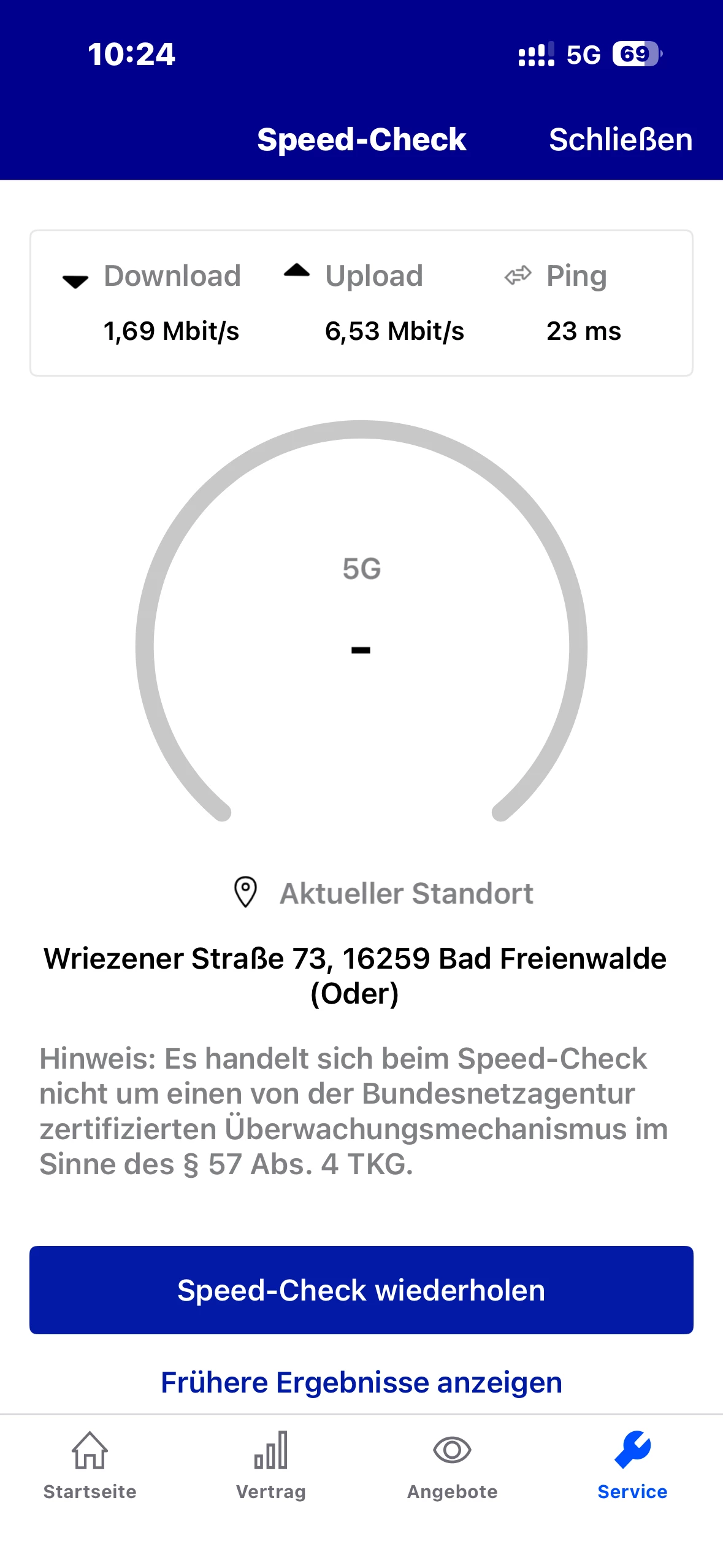 so hier habt ihr ein paar Bilder, wie es bei mir drinnen und draußen aussieht in Bad Freienwalde, ich dachte, in Freienwalde wurde ein Netzausbau gemacht, oder es sind zu viele Kunden in Freienwalde und nutzen. Das Netz kann ich mir nur so erklären, wenn 4G und 5G, so überlastet ist? Mit freundlichen Grüßen, Sebastian Günther