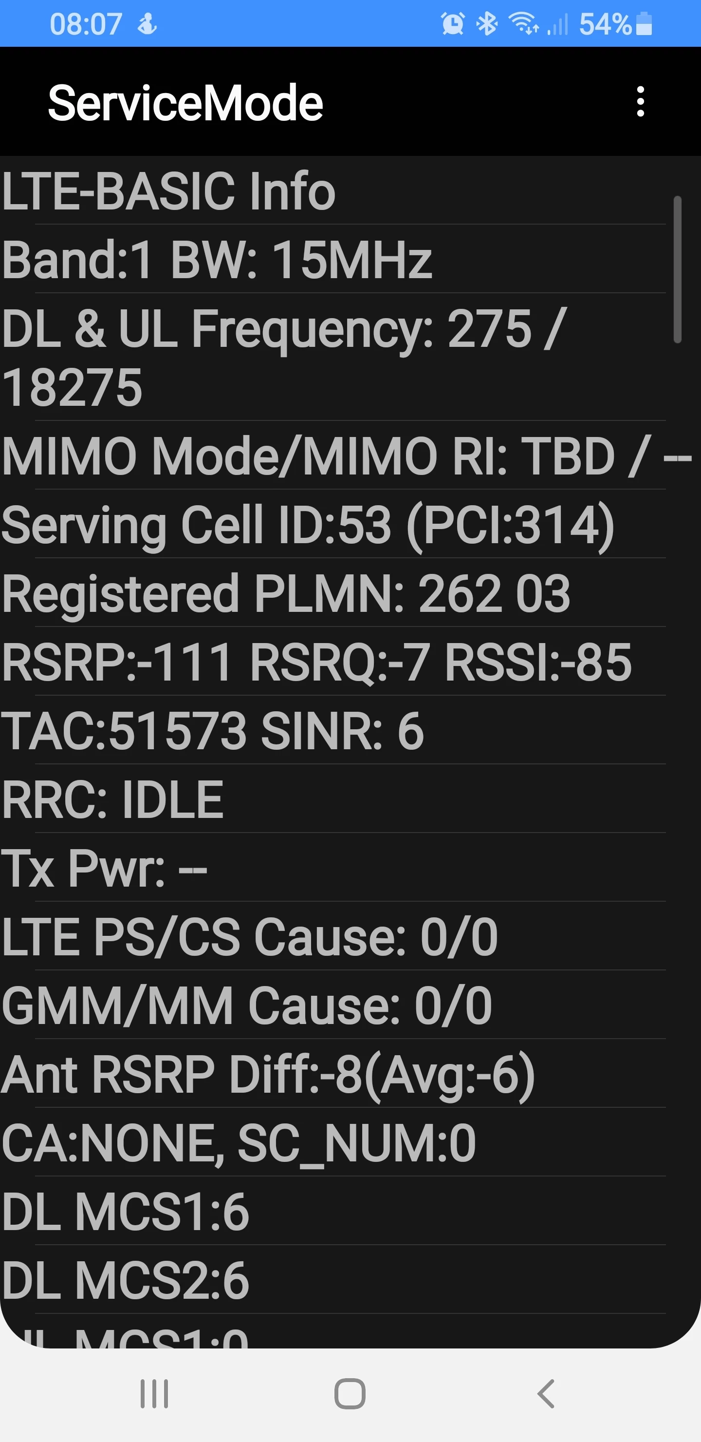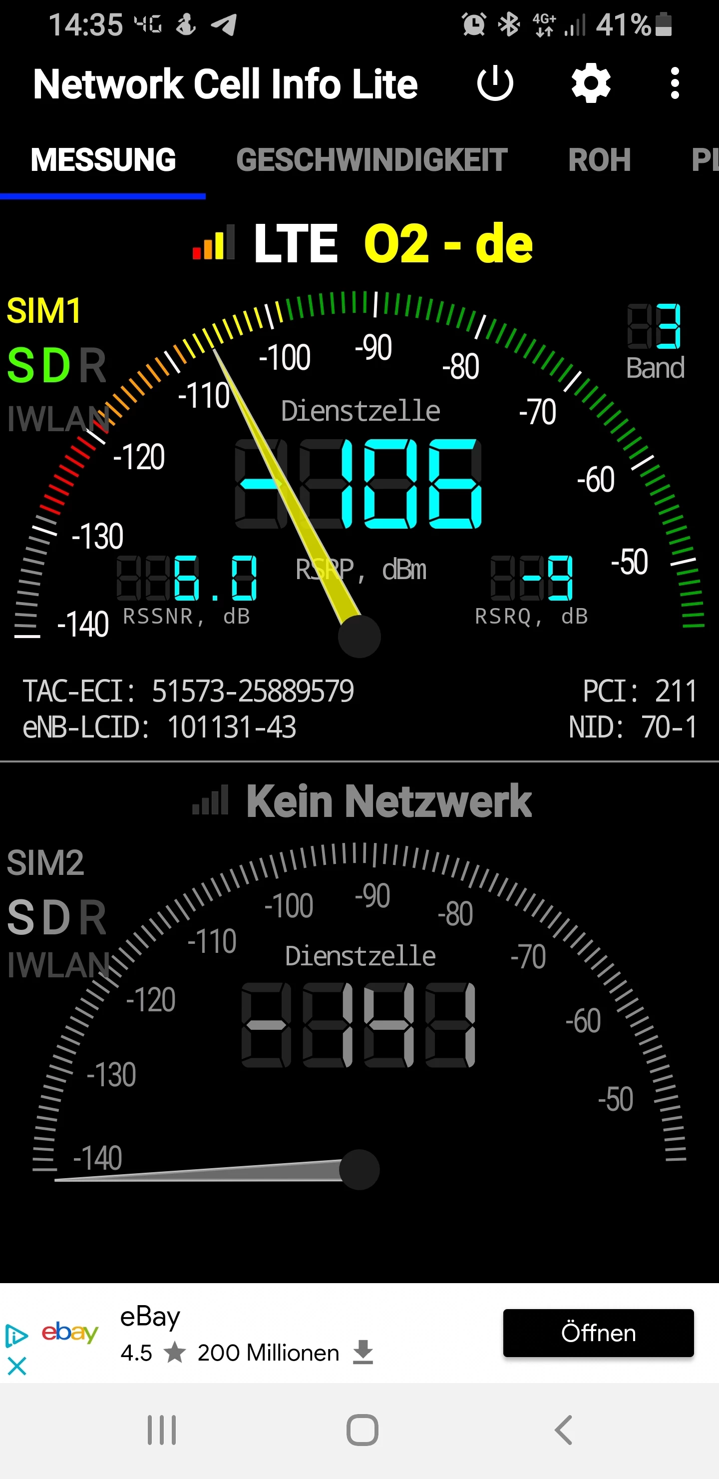 Die -106 dBm würde ich nicht so erst nehmen, da es eine LTE 1800er Zelle ist, die dein Smartphone als Ankerzelle nutzt.