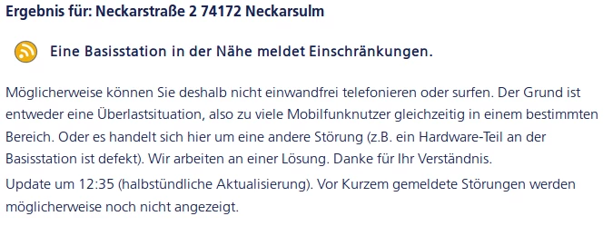 Netzabdeckungskarte zeigt an 4G Empfang innerhalb von Gebäuden 😉 die könnt ihr ruhig mal aktualisieren weil es eben nicht so ist. Hoffe mir kann einer mit Informationen zum Standort helfen.