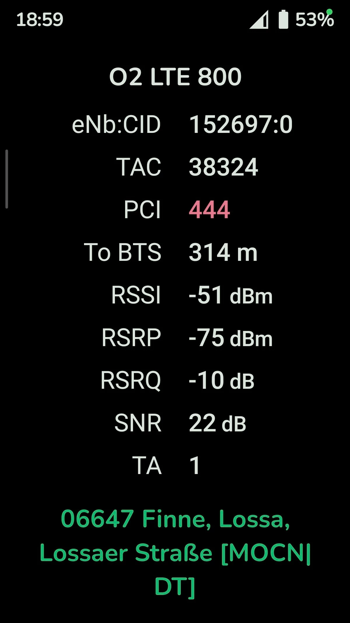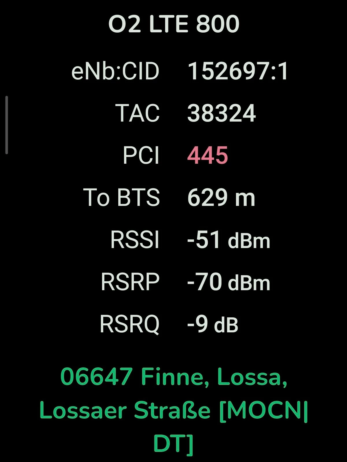 Neues MOCN von der Telekom an o2 auf allen 3 Sektoren. o2 selber hat keine eigene Basisstation. Netmonster kennt es schon. Vodafone samt 1&1 hat wie o2 bisher oben außerhalb der Ortschaft geradeso 1 Balken Netzversorgung.
