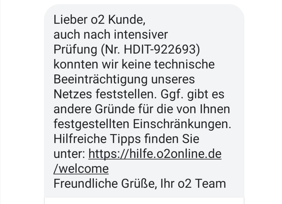 Hallo, seit einer Woche kann ich nicht Mobil Surfen da das Netz nicht Funktioniert. Allerdings ist O2 der Meinung das sie keine Störung finden können obwohl gleichzeitig beim Netzcheck ein Ausfall angezeigt wird.