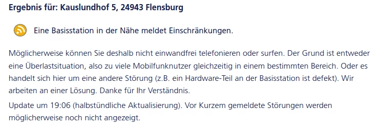 Also laut Livecheck gibt es in diesen Bereich weiterhin eine Netzstörung: