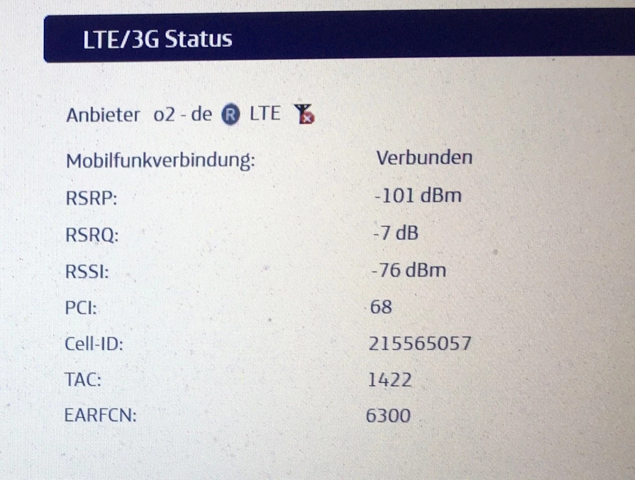welche Empfangswerte erreichst du aktuell? :relaxed: Magst du vielleicht nochmals einen Screenshot vom “LTE / 3G” Status hier posten?