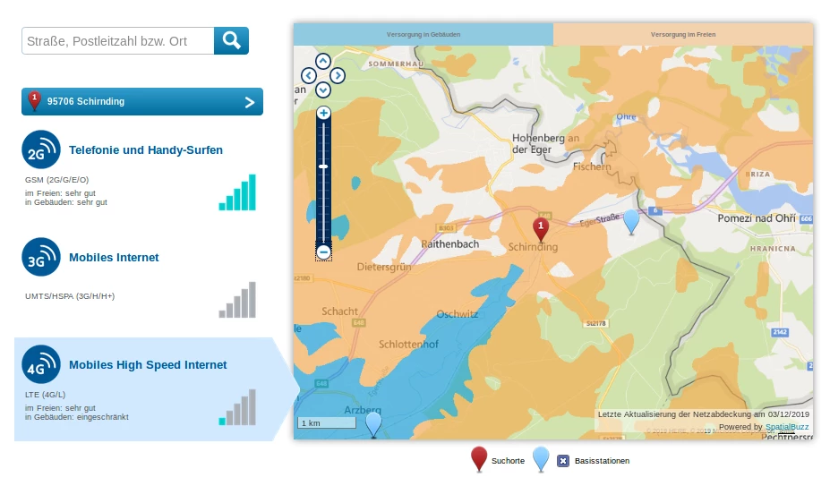 Für mich sieht es so aus, als wäre Schirnding aktuell noch ungeeignet für den Homespot, denn dort gibt es keine LTE Versorgung von o2: