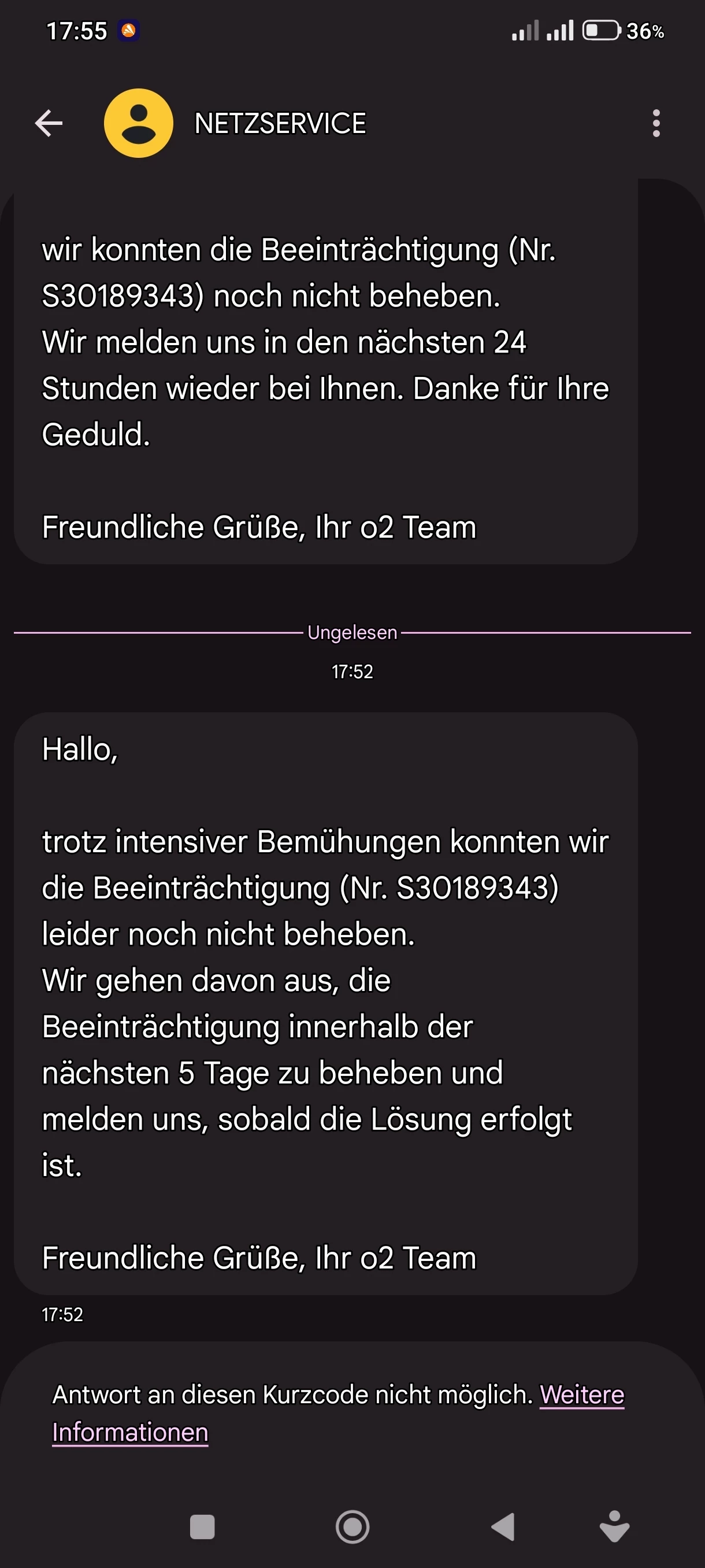 Habe seit paar tagen störung und wichtige termin verpasst.