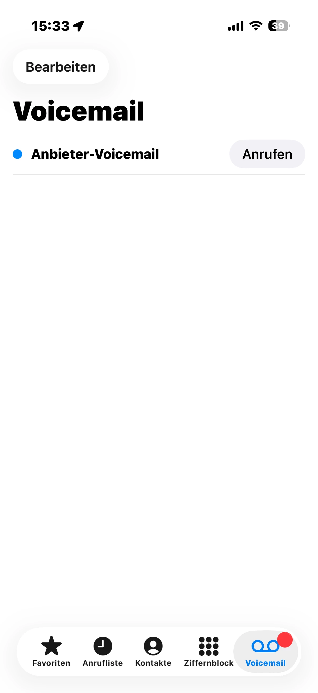 Ständig der Hinweis, dass ich keinen Zugang zum System habe. In der Telefon-App habe ich an der Voicemail das Kennzeichen, dass da ein Anruf ist/war – keine Ahnung. Lässt sich auch nicht löschen.